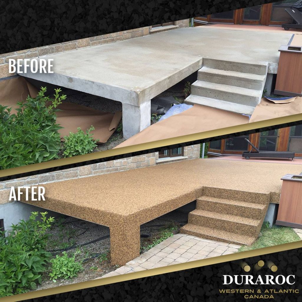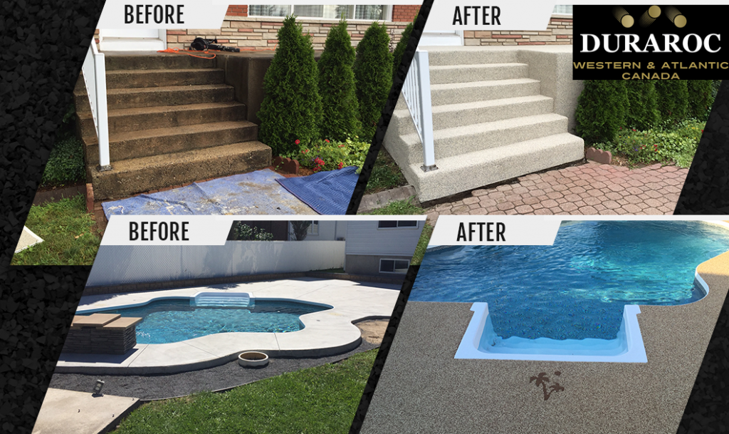 DURAROC Western & Atlantic Canada rejuvenates and restores pool decks without removal of existing surfaces such as concrete, patio stones and, interlock. With a variety of colours to choose from each customer creates their own unique colour combination to beautify and provide a safe surface. Safety with Style!